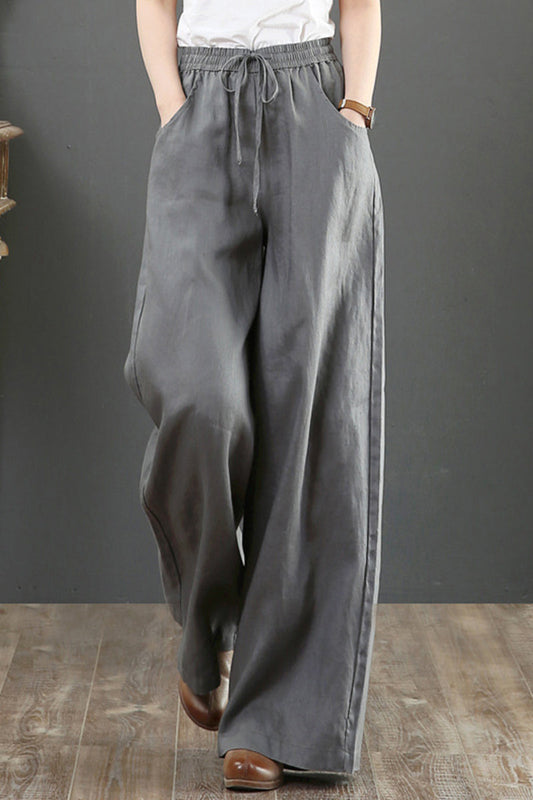 Elegant Solid Pocket Frenulum Loose High Waist Wide Leg Solid Color Bottoms