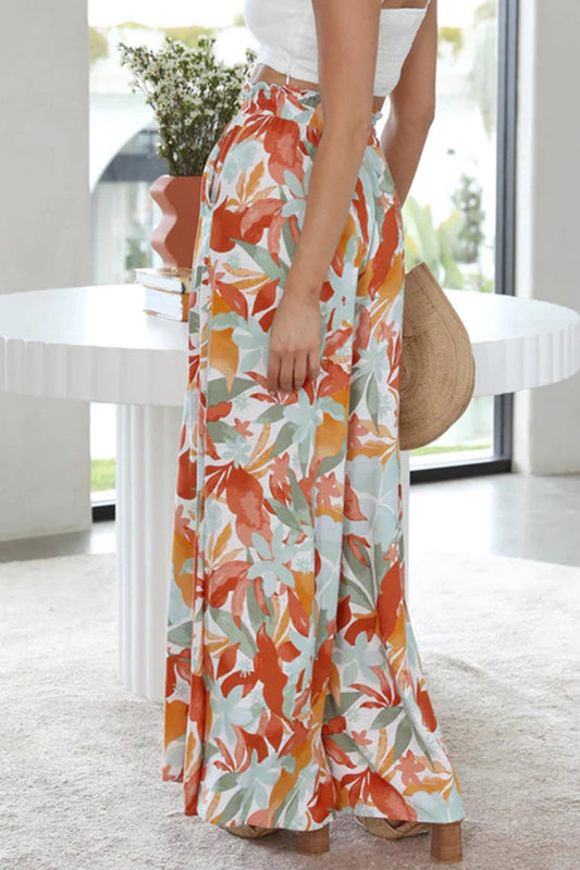 College Floral Loose High Waist Wide Leg Full Print Bottoms