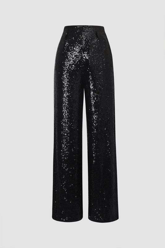 Madge Black High Waisted Wide Leg Sequin Embellished Pants
