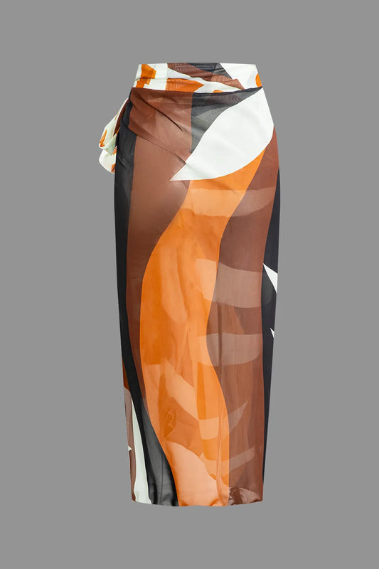 Silvia Patchwork Asymmetrical Pleated Buttoned Midi Skirt