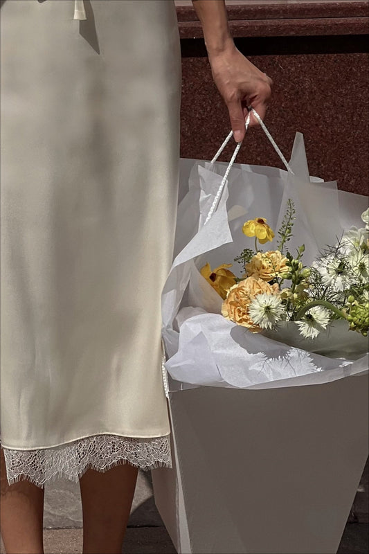 Satin Lace A-Line Midi Skirt