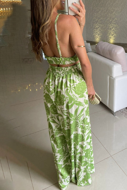 Casual Floral V Neck Sleeveless Two Pieces