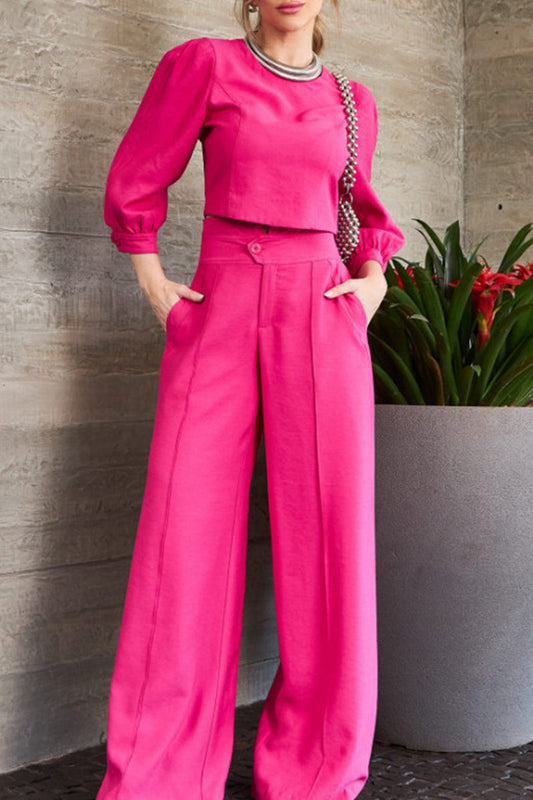 Elegant Solid Pocket O Neck Long Sleeve Two Pieces(3 Colors)