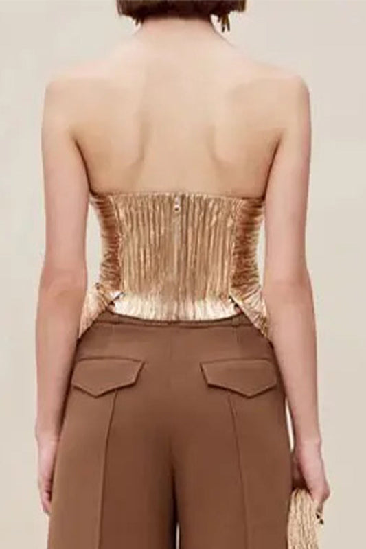 Sexy Solid Fold Zipper Strapless Tops