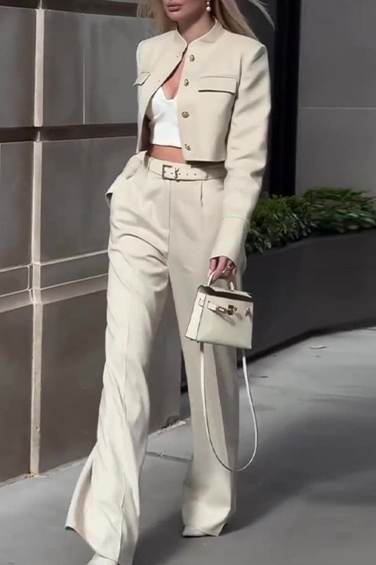 Casual Pocket Buttons O Neck Long Sleeve Two Pieces