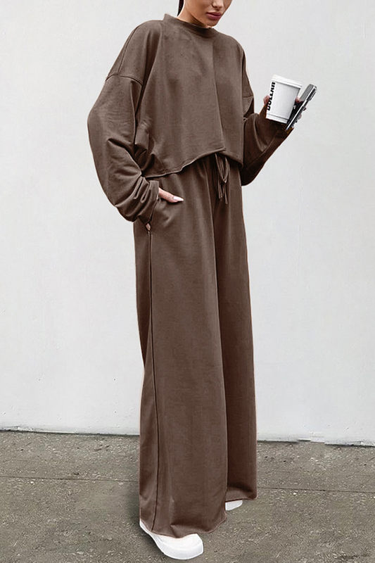 Casual Street Pocket Lace Up O Neck Long Sleeve Two Pieces