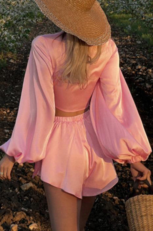 Sexy Solid Bandage V Neck Long Sleeve Two Pieces
