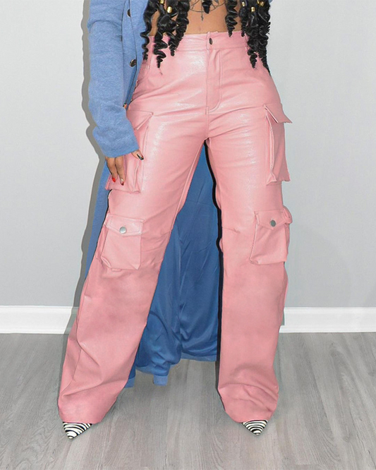 PU Leather High-Waisted Loose Straight-Leg Pants