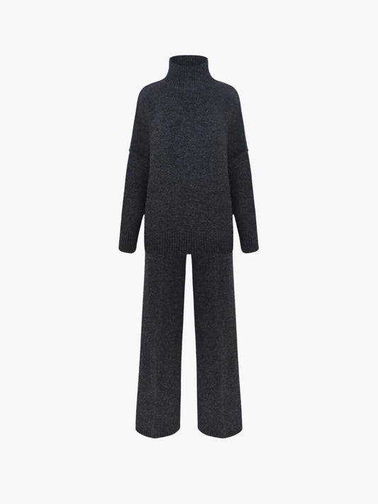 Cozy Knit Turtleneck Set with Wide-Leg Pants