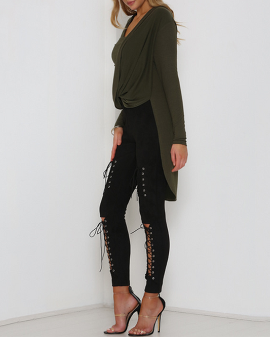 Long Sleeved Bow Tie Tied Hollow Pants Set