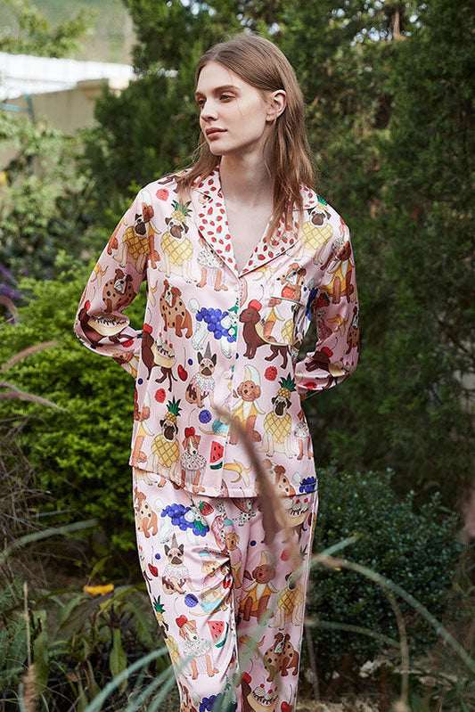 Christmas Print Short Sleeves Cute Cartoon Print Set