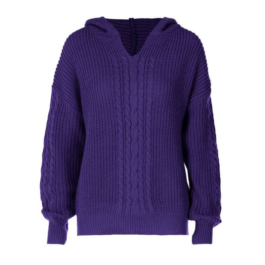 Hoodie long sleeve knitted solid v neck top-final-sale