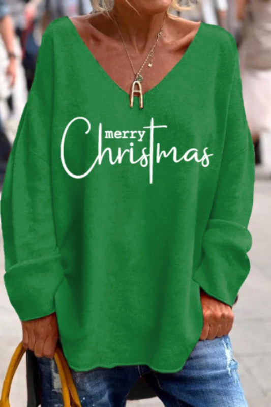 Fashion British Style Santa Claus Split Joint Letter O Neck Tops