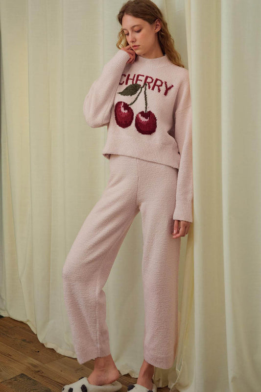 Soft Half Velvet Cherry Cardigan Pajama Set