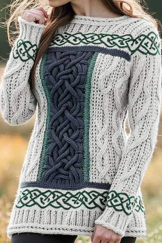 Women's Irish Celtic Knotted Contrast Jacquard Sweater