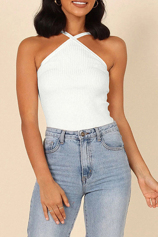 Sexy Simplicity Solid Solid Color Halter Tops(4 Colors)