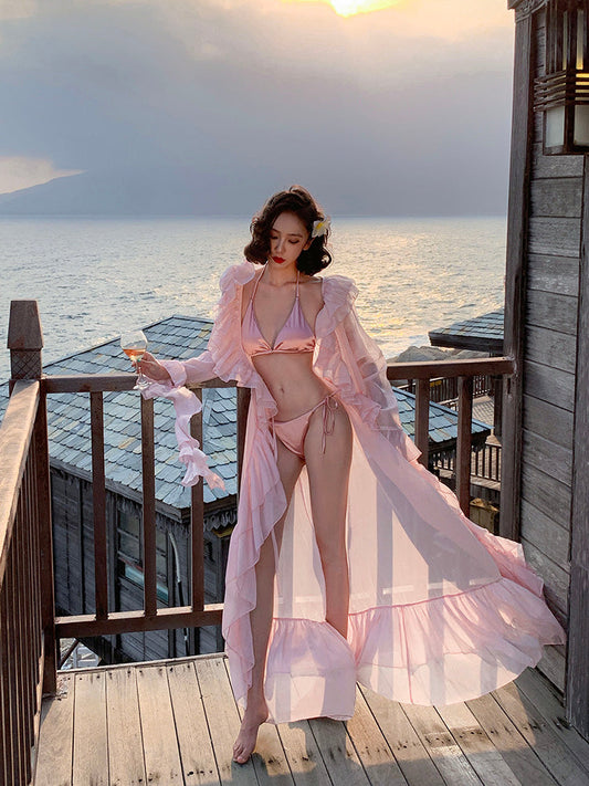 Tropical Mirage - 3-Piece Bikini Set with Sheer Cover-Up