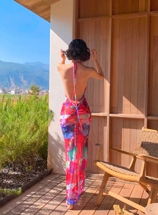 Floral Print Bat Sleeve Sashes Wrap Maxi Boho Cover-ups