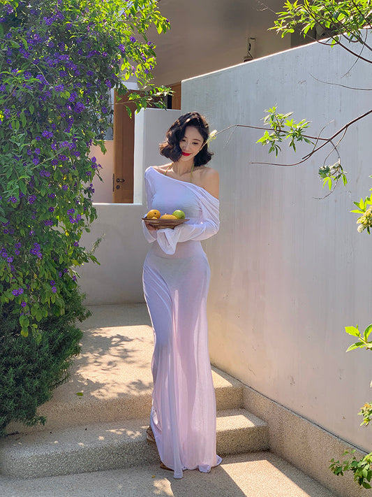 Solea Knit Mesh Beach Dress – Long Sleeve Cover-Up with Ring Detail