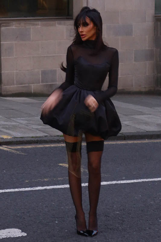 Winter Elegant Mesh Sheer Slim Fit Puff Mini Dress
