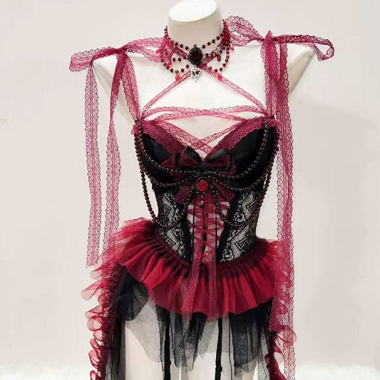Sweetheart neck bowknot lace hem beaded mesh mini dress