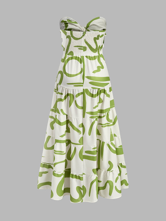 Print Tie Halter Strapless Dress