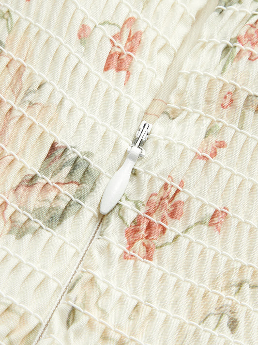 Boho Smocked Off-Shoulder Ruffle Floral Dress
