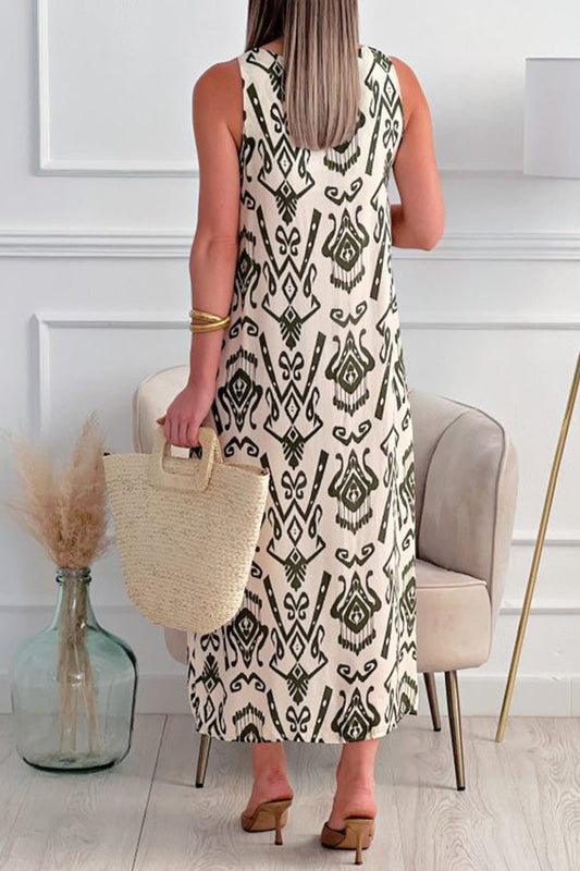 Basically Perfect Geometry Printed Long Sleeve Casual Maxi Dress