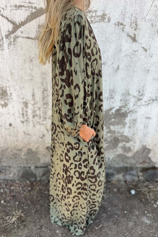 Leopard Print V-neck Pullover Long-sleeved Loose Dress