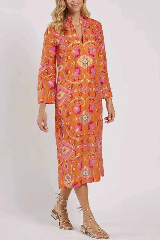 Bahamas Unique Print Dolman Long Sleeve Ruched Slit Midi Dress