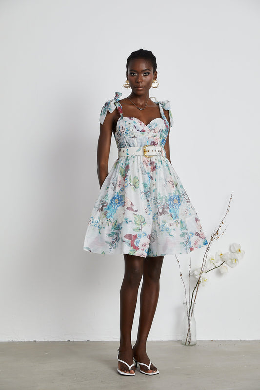 Ophelia Floreal Print Belted Mini Dress