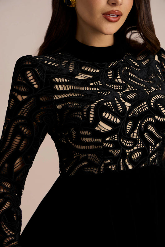 Setlla Long Sleeve Hollow Velvet Mini Dress