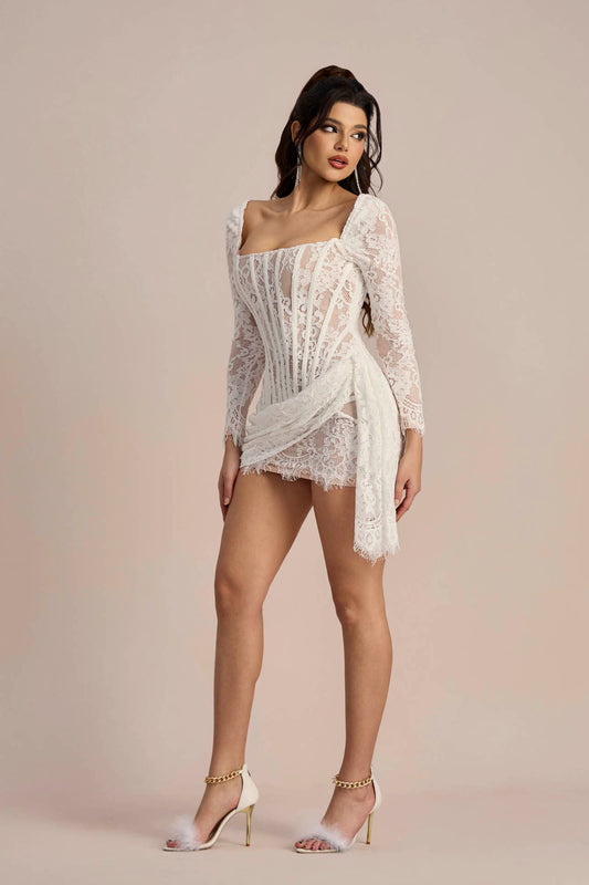 Valentina Long Sleeve Corset Mini Lace Dress