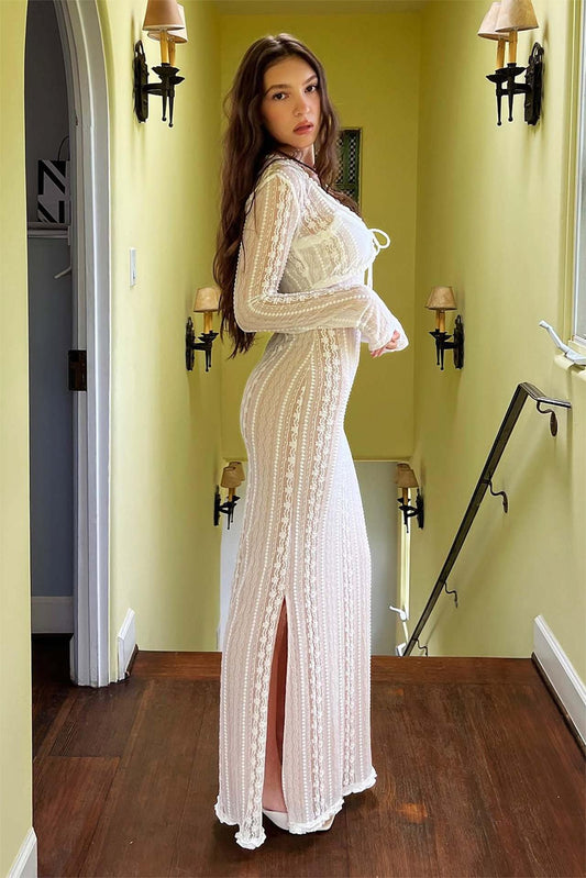 Cut-Out Lace Up Ruffle Hem Cami Maxi Dress