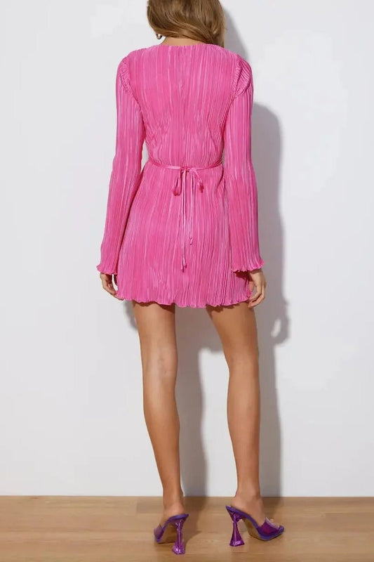 Floral V-Neck Long Sleeve Midi Dress Pink