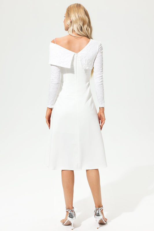 Long Sleeve Asymmetrical Cowl Neck Midi Dress White