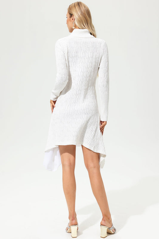Knit Long Sleeve Turtleneck Ruffled Mini Dress White