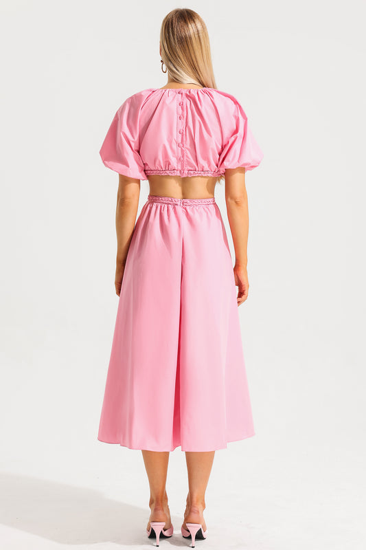 Off-Shoulder Smocking Long Sleeve Split Midi Dress