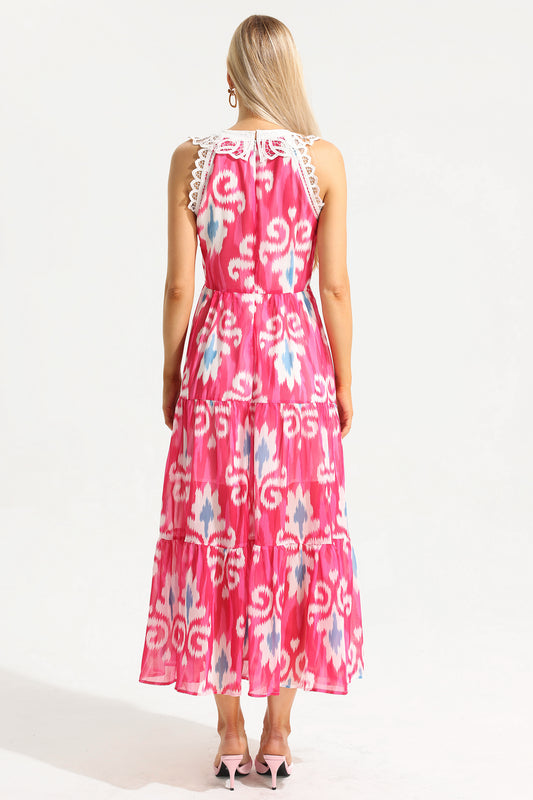 Lace Abstract Print Sleeveless Round Neck Midi Dress