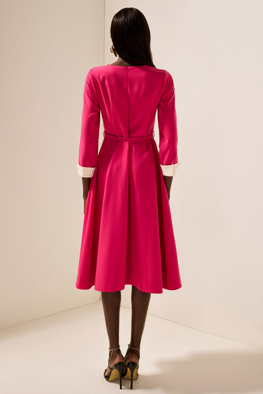 Pleat Split Contrast Color Off-Shoulder Midi Dress