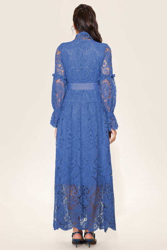 Single Breasted Lace Split Midi Dress