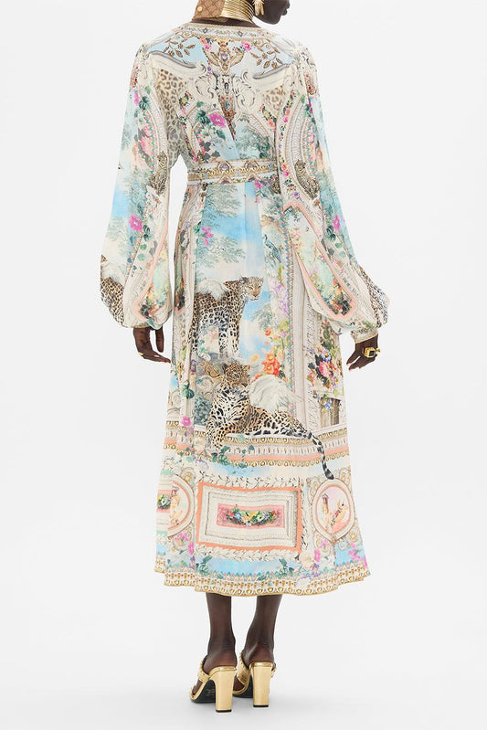 Gold Foil Stamping Slit Long Sleeve Maxi Dress