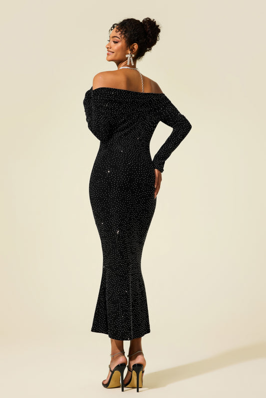 Rhinestone Sequin Sleeveless Maxi Dress With Cape