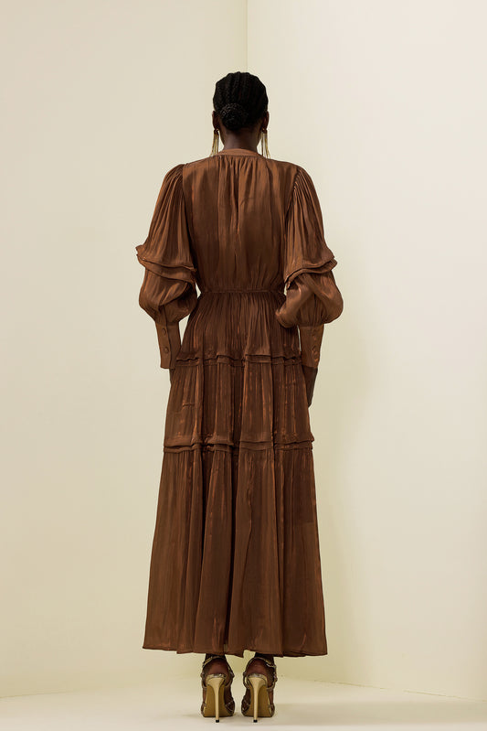 Cowl Neckline Pleat Long Sleeve Maxi Dress
