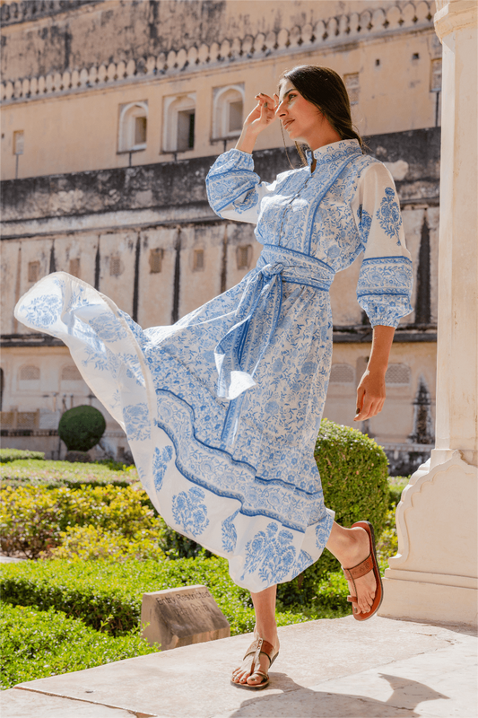 Paisley Print Lantern Sleeve Midi Dress