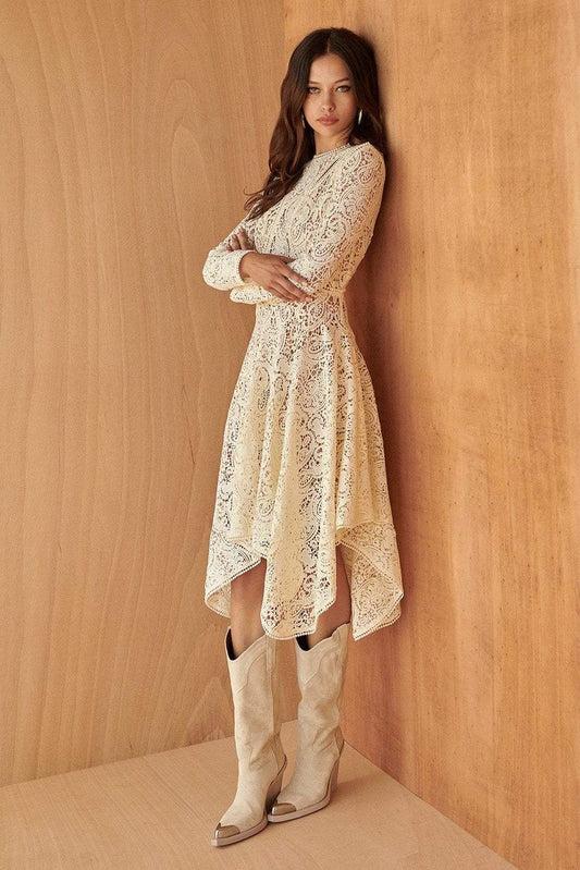 Lace Cut-Out Long Sleeve Midi Dress