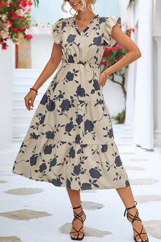 Wine Country Dates Floral Halter Neck Elastic Waist Maxi Dress