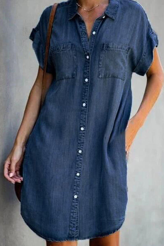 Fashion sexy slim V-neck solid color short-sleeved dress