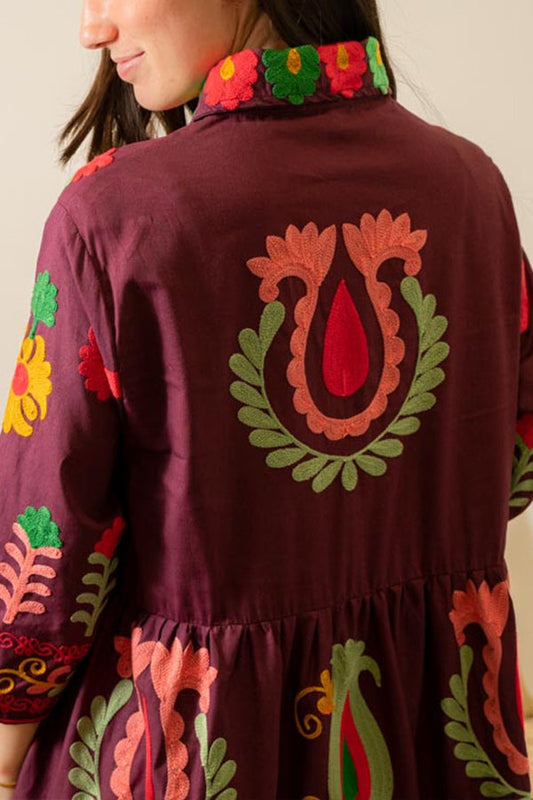 PURPLE FLOWERS SHIRT DRESS