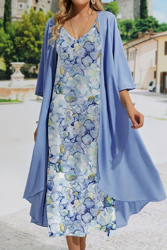 Sexy Floral V Neck Half Sleeve Two Pieces